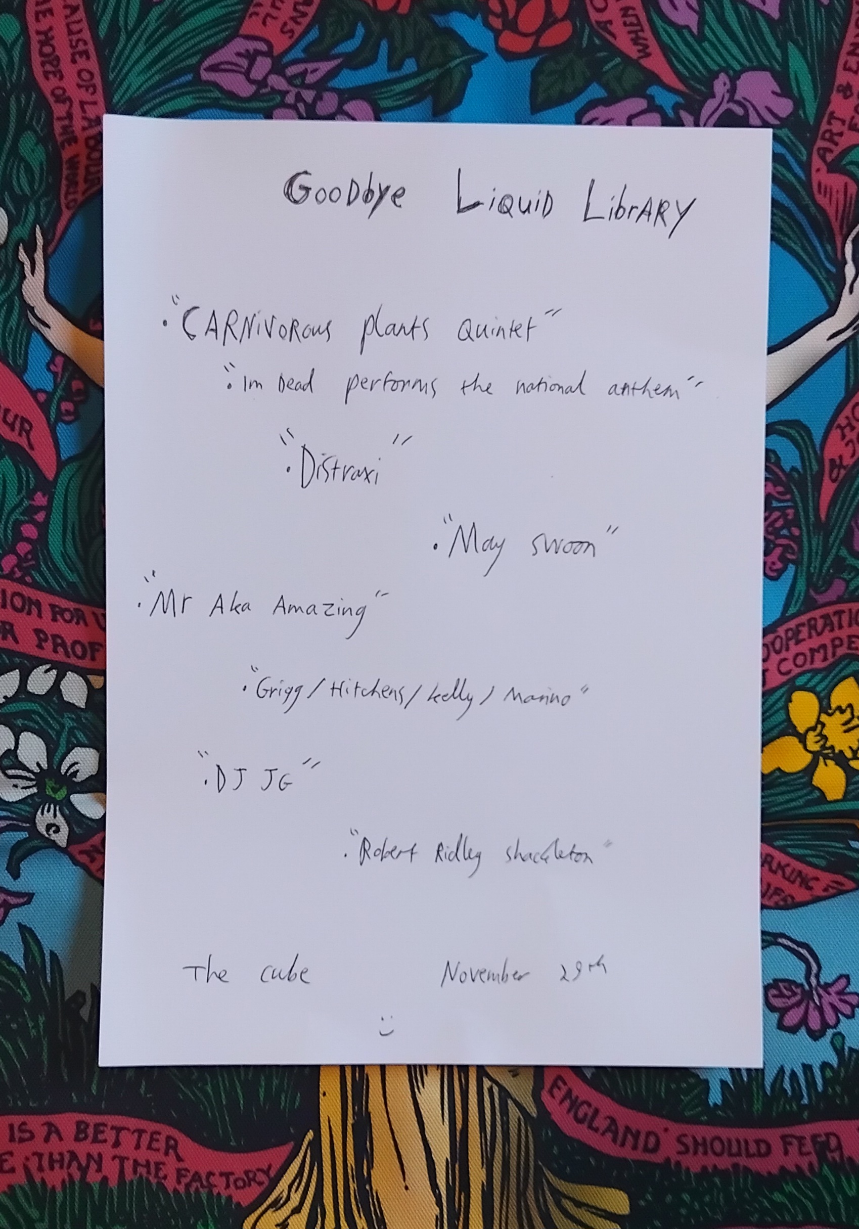 This is Owen from experimental tape label and gig promotion entity Liquid Library. For the last ten years I've put on gigs in every corner of Bristol with my best friend Charlie.