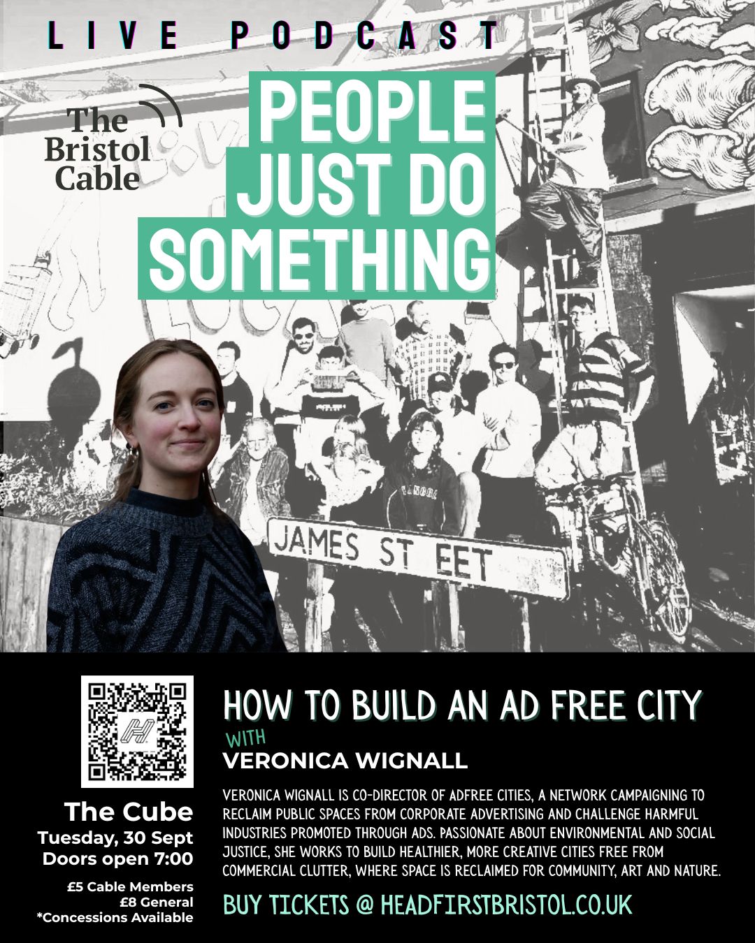 Reporters Priyanka Raval and Isaac Kneebone-Hopkins, and special guest Veronica Wignall (Adfree Cities), attempt to untangle the means of effecting change in Bristol, broken Britain and beyond. Here, they explore harmful advertising, challenging corporate outdoor advertising, and reclaiming public space for art, community and nature.