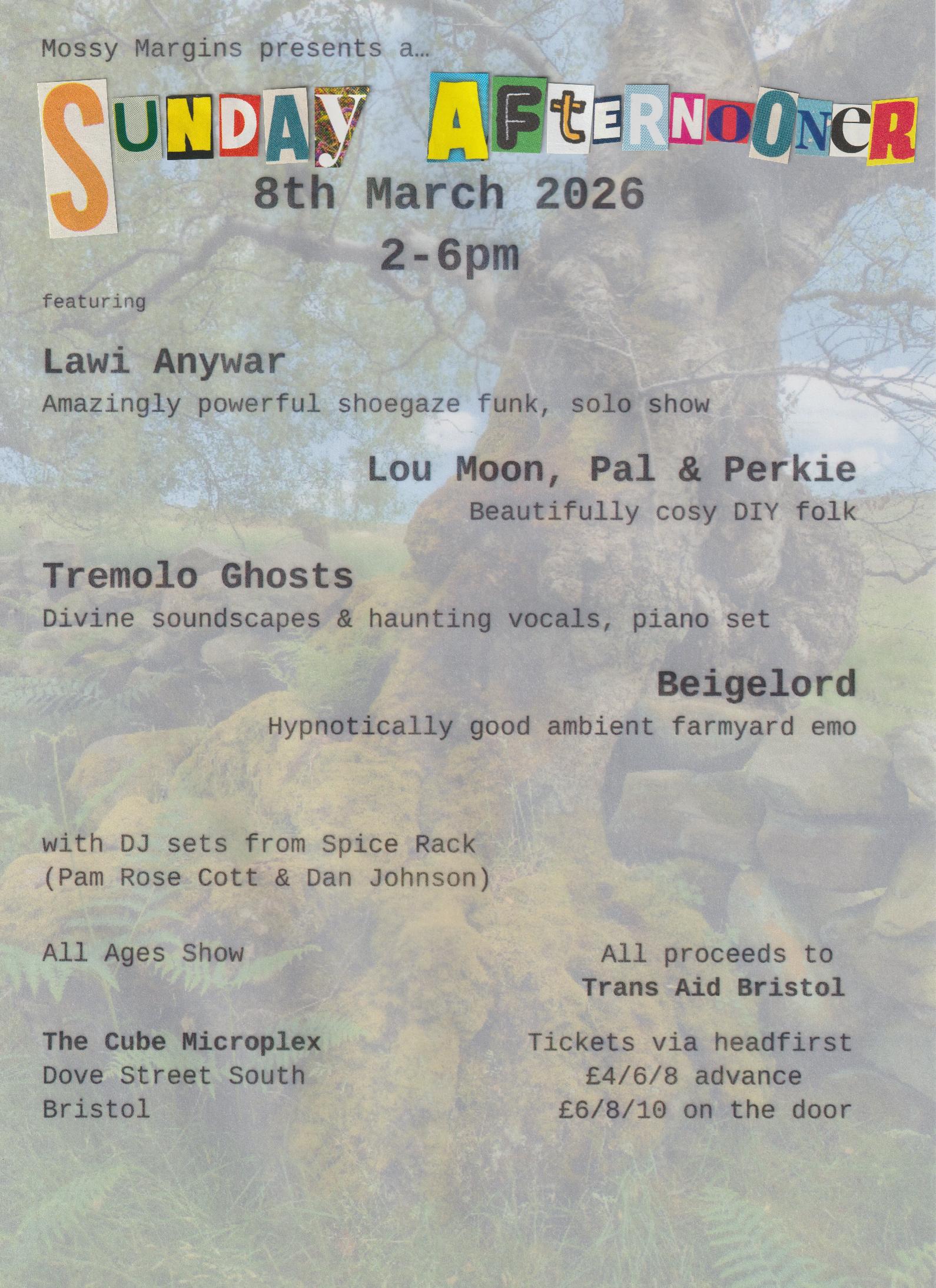 A Sunday Afternooner w/ Lawi Anywar, Lou Moon/Pal/Perkie, Tremolo Ghosts & Beigelord
